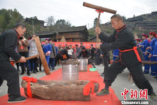 甘溪侗寨侗胞打糍粑闹新春。 袁灿平 摄