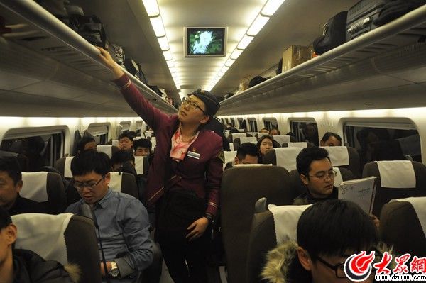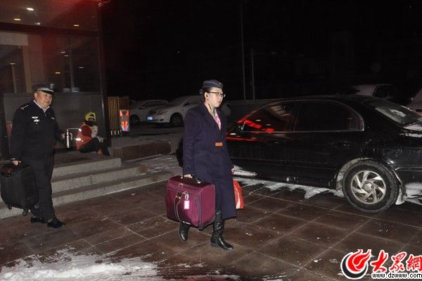 22日早晨4点20分,威海已经飘起鹅毛大雪。青岛客运段列车长谢元秋已经起床,带着自己的班组赶往车站。