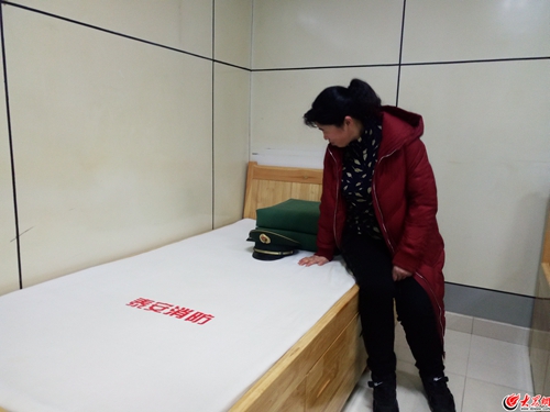 袁彩文坐在儿子的床铺上,静静感受儿子的气息。