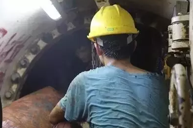 为了确保盾构机的顺利掘进,知识城支线【枫下~知识城】区间的施工人员钻进了土压仓里,去观察刀盘转动的状态。