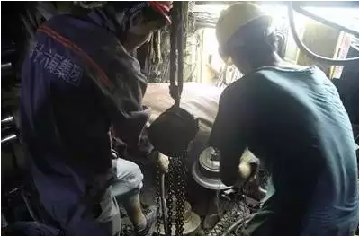 狭窄的盾构机土仓里无法动用大型的起重设备,几百斤重的刀具只能通过施工人员使用“环链葫芦”和绑带人工运输,靠人力完成更换。