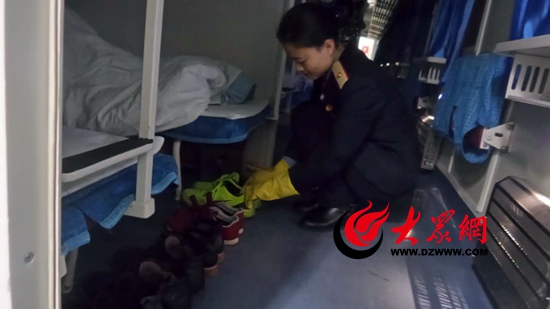 “晚上,特别是凌晨两三点,车厢间的温度很低,如果不把水擦干净,就有可能结冰,旅客行走就容易打滑,影响安全。”说着,时间到了23点,温丽娜说她要提醒乘客在砀山站下车,就赶忙起身查看要下车的乘客信息。这时,记者的腿已经冻得发麻发软,站起来后一阵晕,两只脚冰凉。温丽娜提醒说,用手拍拍小腿肚,一会就好。