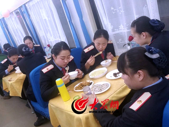 温丽娜所在的济南铁路局青岛客运段西安六组共有29名乘务员。他们中,年龄最大的25岁,最小的还没有过17岁生日,大多来自青岛周边县市以及河北、东北等省。今年大年初三,这趟列车就从青岛出发,值乘青岛至西安往返,回到青岛当天,又值乘青岛至曹县往返,大年初六晚上8:10才能回到青岛。每次随车出行都要整整工作四天,他们用辛苦换来舒适的乘车环境,让旅客顺利回家过年团聚。