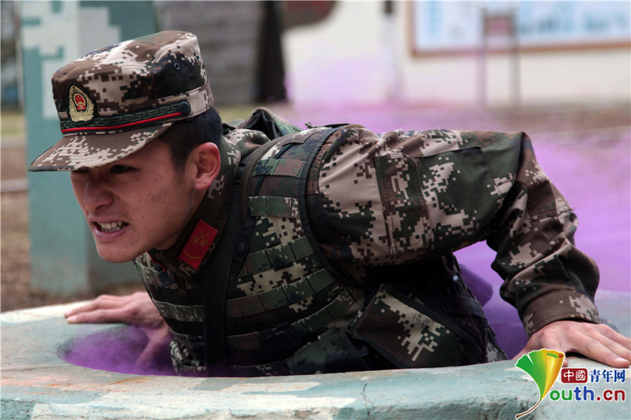 武警官兵正在快速通过300米障碍。 通讯员 王俞、董亚涛 摄