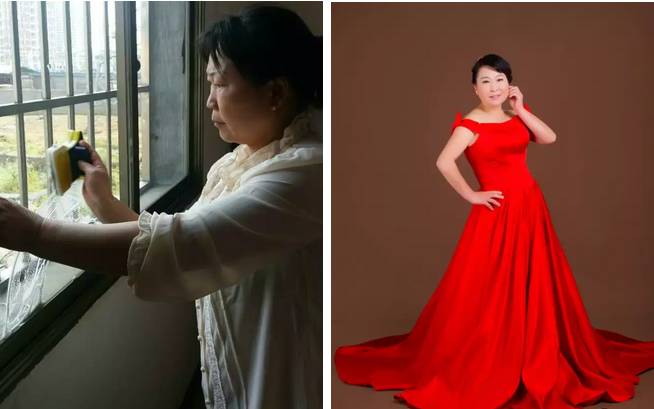 “当年结婚的时候,没有条件拍婚纱照,现在,我穿了20多年环卫服终于也可以穿上这么漂亮的衣服,拍这么美的照片,真有点不敢认我自己了!”