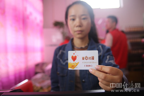 爱心超市志愿者杨楠向记者展示爱心对接卡。(经济日报-中国经济网记者邓浩 摄)