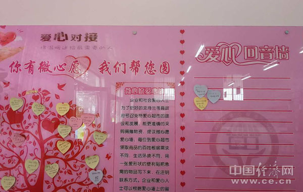 爱心超市里的爱心对接墙。(经济日报-中国经济网记者邓浩 摄)