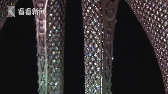 将要在进口博览会上展出的这双“春灿”是全球唯一一双全钻定制的珠宝鞋。这双鞋的鞋体由4颗1克拉主石,超1万颗共计300克拉的粉红钻石雕琢而成。粉钻是世界上最昂贵和稀有的宝石之一,因此这双珠宝鞋的设计、寻找宝石和制作过程历时2年,光钻石的手工镶嵌就花费360个小时。而这次采用的K金六爪密钉镶技术,也令钻石在鞋面上更加轻薄服帖,上万颗钻石在灯光下簇拥汇聚,宝石如腾云星光,点点灿亮。(看看新闻Knews记者:李书馨)