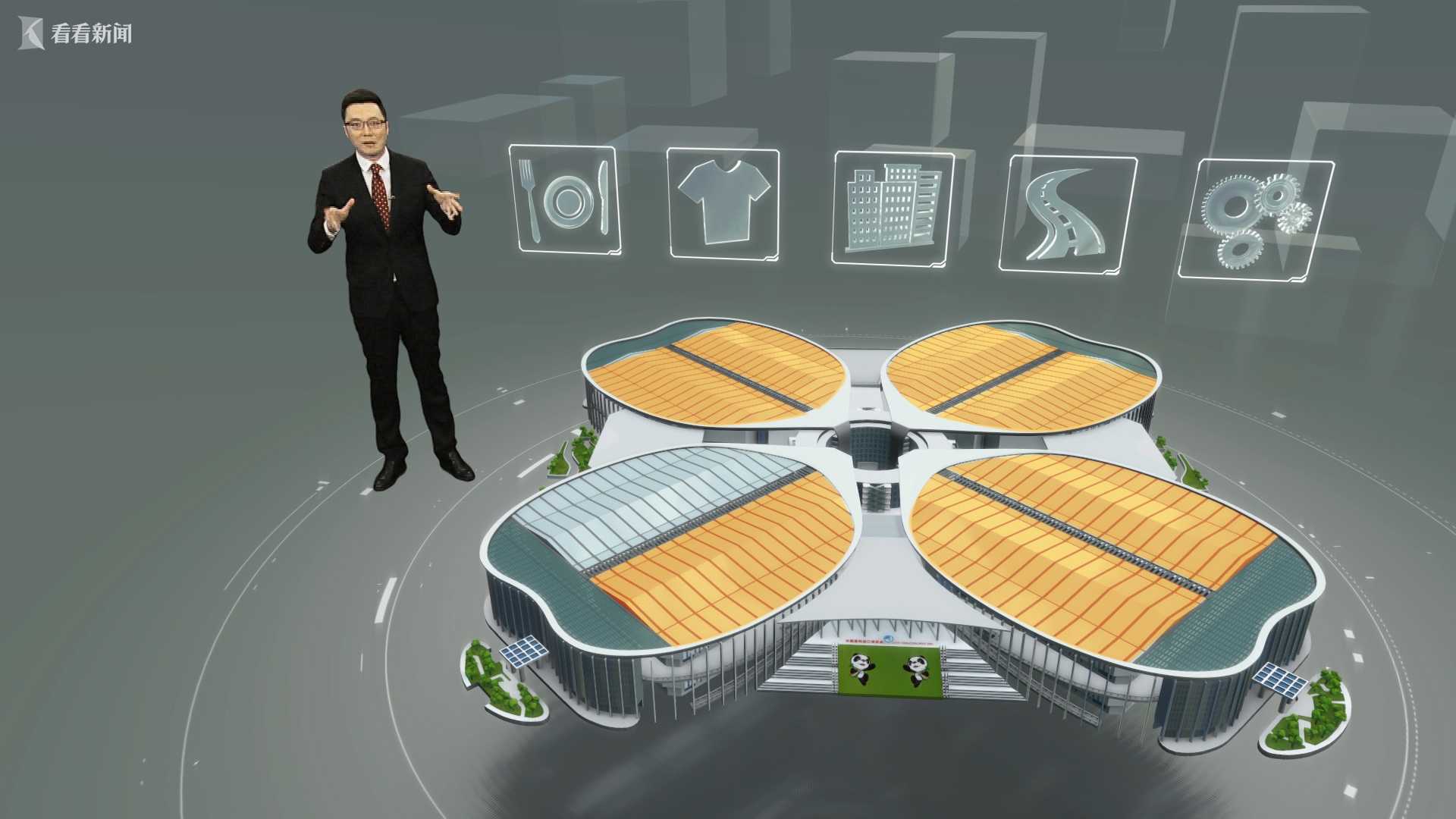 从空中俯瞰,国际会展中心的主体建筑犹如一片闪着银光的"四叶草",四叶草寓意着幸运,如今它敞开怀抱,迎接来自全世界 130多个国家和地区的3000多家参展企业,共享这场"不一般"的全球盛会。