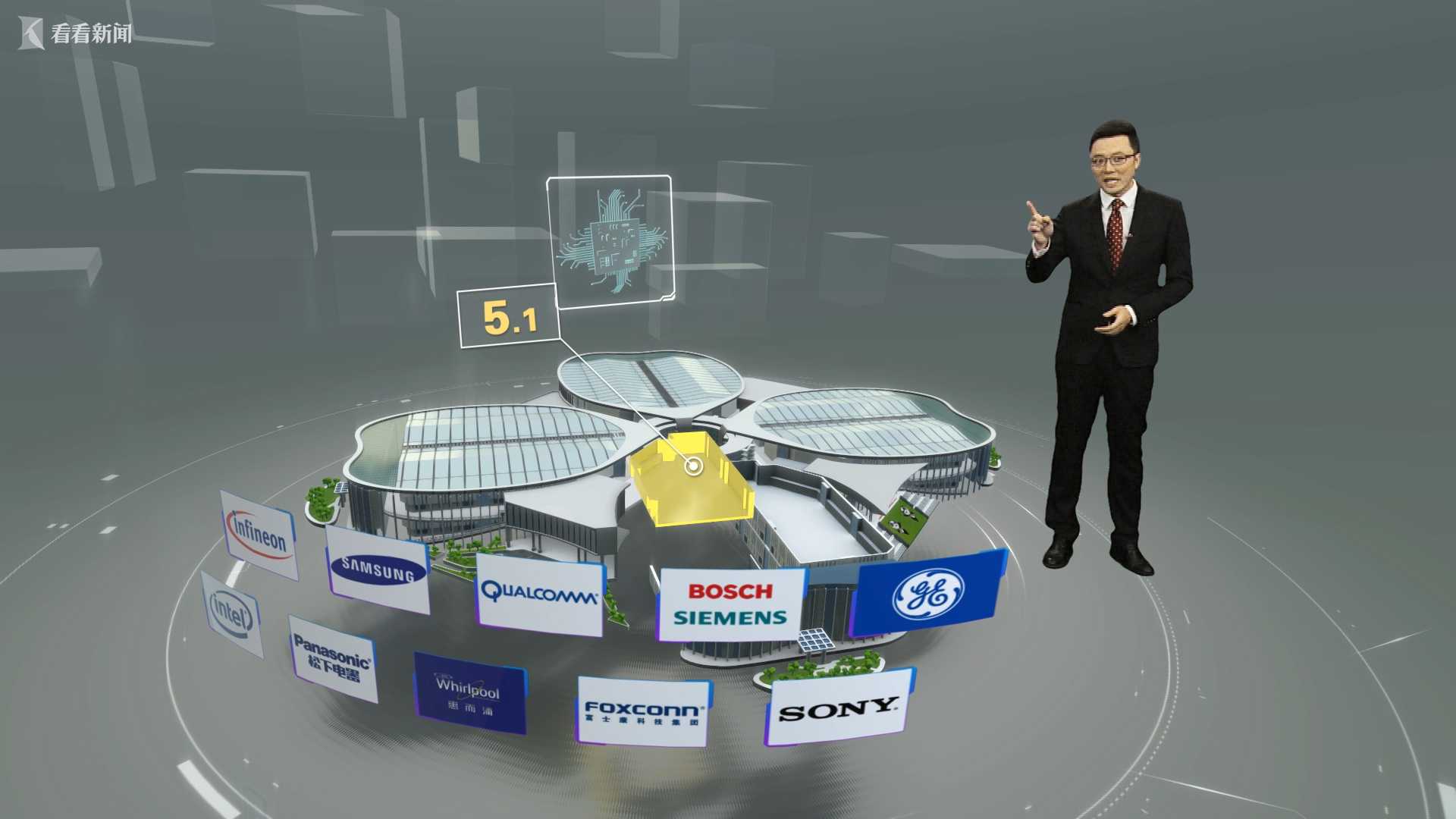 再来看它正对面的这片叶子,智能及高端装备展区,它所在的3号和4.1号馆是目前世界上承重能力最强的展厅,地面荷载高达每平方米5吨,因为来这参展的有很多是"重量级的选手",整个进博会最大的展品来自德国的金牛座龙门铣床就坐镇于此。