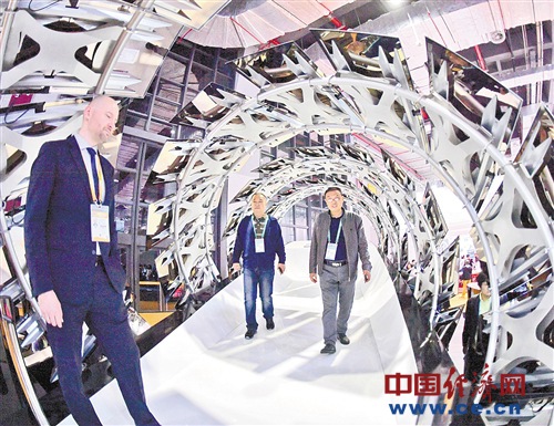在德国AVANCIS展区,观众在参观由智能太阳能板组成的建筑。 经济日报-中国经济网记者 高兴贵摄