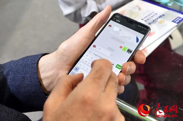 麦克马洪经常通过微信与中国的合作伙伴和员工们交流。人民网记者翁奇羽摄