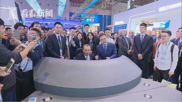 一旁的驾驶舱模拟台尤其受欢迎,吸引体验者们过一把"高铁司机瘾"。最上方显示的列车时速,令外国政要等宾客都赞不绝口。