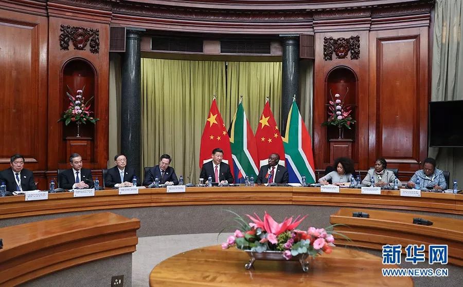 ▲7月24日,国家主席习近平在比勒陀利亚同南非总统拉马福萨举行会谈。 (新华社)