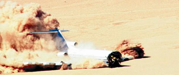 楚天都市报讯 据《中国日报》报道 日前网上一组图片吸引了网友们的注意,图片显示一架波音727客机坠毁在沙漠中,机身折断,惨不忍睹。但事实上这并不是一场空难,而是一个试验。蓄意让飞机坠毁是为了让专家们研究飞机机身、机舱的抗坠毁能力以及坠机对人体产生的碰撞等。