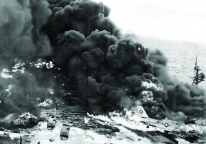 1969年1月14日,在距离夏威夷七十五海里处,“企业”号正在执行任务。突然,飞机甲板上一枚火箭弹爆炸,引起了熊熊大火。瞭望塔和甲板上的数架摄像机拍摄下了当时的情景(上图)。燃料箱起火后引起更多的弹头爆炸,整艘航母在瞬间被吞没。飞行甲板上,二百二十六公斤炮弹爆炸,几乎导致航母沉没。随后,飞机燃料泄漏,甲板上下一片火海,令人窒息。仅仅二十分钟,就有三百四十名士兵受伤,其中大多数都是消防人员。此外,还有二十八人遇难。如今,这次事故经常会被用来教育新兵。但很快,“企业”号就再次披挂上阵。