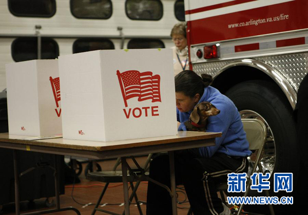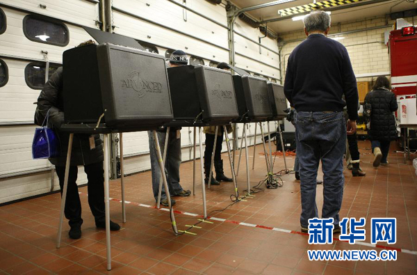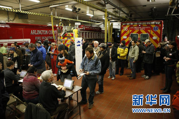 11月6日,在美国弗吉尼亚州阿灵顿,选民在一个设在当地消防站的投票点参加投票。 当日,2012年美国总统大选投票在全美各地陆续开始。新华社记者方喆摄