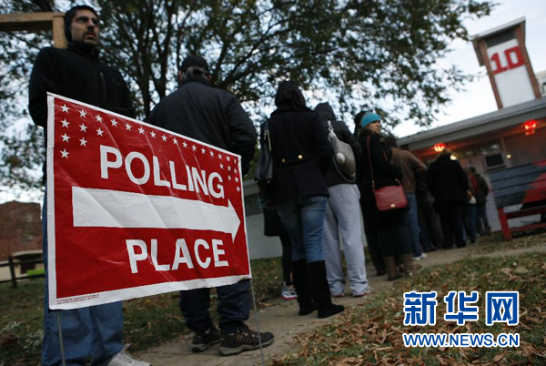 11月6日,在美国弗吉尼亚州阿灵顿,民众排队进入一个设在当地消防站的投票点。当地时间11月6日,2012年美国总统大选投票在全美各地展开。 新华社记者方喆摄