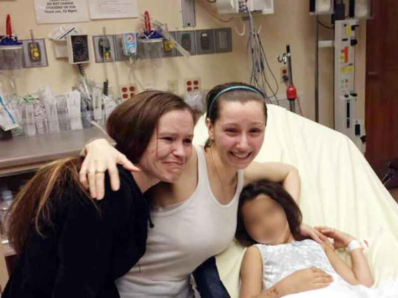 当地时间5月6日晚,美国俄亥俄州克利夫兰市,3名遭绑架失踪达10年之久的女子成功获救。图为其中一名获救女子贝利(中)与姐姐重逢,旁边的6岁女孩被疑为贝利在被囚禁期间所生。