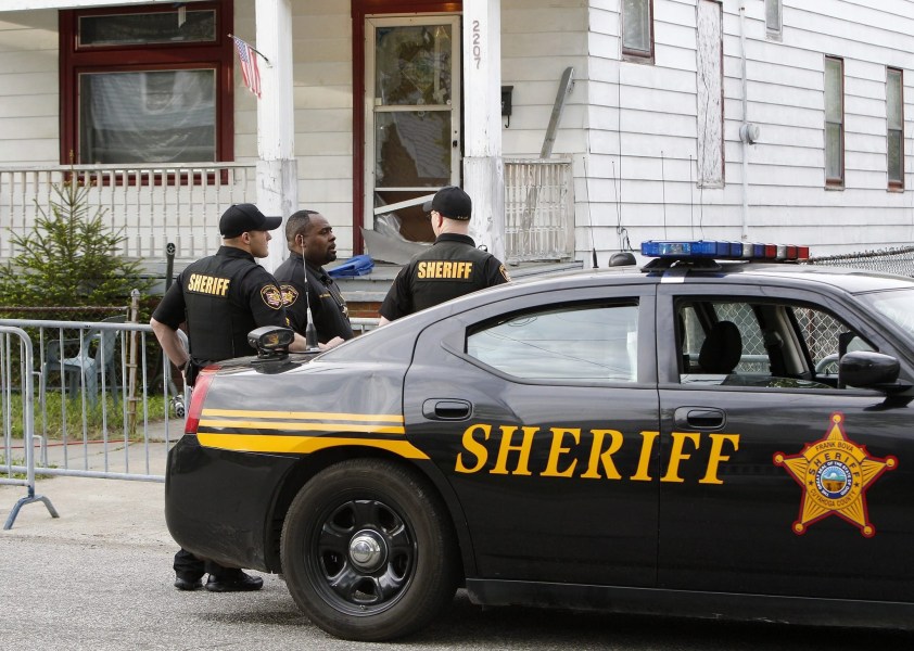 5日晚,绑架者离开民宅,被绑女子贝利试图逃出房屋,邻居兰姆西听到喊叫和踢门声后踢开门并打电话报警。贝利与一个小女孩爬出来,向警方表示仍有两名女子被囚。图为警方搜索民宅。