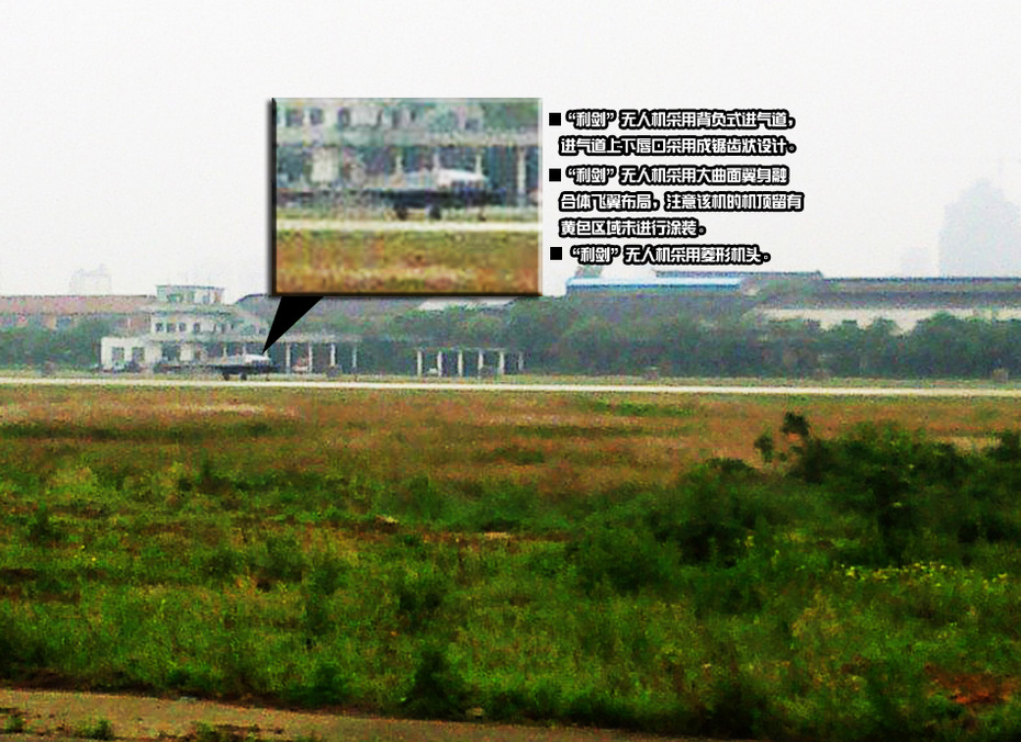 “利剑”无人机采用了飞翼式布局,这个几乎没有什么悬念,如果大家看一下近期各国发展的无人作战飞机如X-47B、神经元,就会发现飞翼式布局几乎是大家都在采用的布局,这是因为飞翼式布局是目前公认的能够兼顾考虑隐身、航程等性能的气动布局,它的优点主要包括;隐身性能好,飞翼式布局没有垂直尾翼和平尾,对于常规布局的飞机来说,这是一个主要的雷达电波反射源,同时机身剖面接近于翼型,上下表面在展向上与机翼表面和缓的过渡,没有明显的界限,较好的融合为一体,整个表面光滑顺畅,没有明显的鼓包、缝隙等,进一步提高飞机的隐身性能。