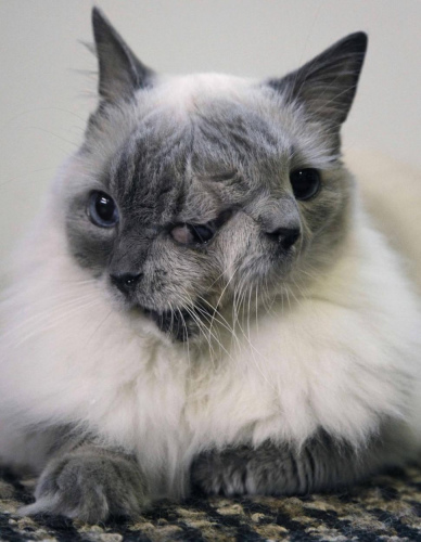 15岁的“双脸猫”名叫“弗兰克与路易”,它在今年感恩节前后重病不起,主人史蒂芬斯说“双脸猫”可能换上了严重的癌症。