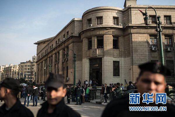 3月2日,在埃及首都开罗,警察在发生爆炸的最高法院门前警戒。当日,位于开罗市中心的埃及最高法院附近发生一起爆炸,造成至少2人死亡,9人受伤。 新华社记者潘超越摄