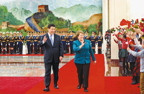2014年,习近平同智利总统巴切莱特举行会谈