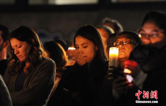 当地时间12月3日晚,美国加州圣伯纳迪诺民众举行烛光集会,悼念在枪击案中的无辜罹难者。12月2日,加利福尼亚州南部圣贝纳迪诺市一家名为“内陆地区中心”的残障康复中心发生枪击事件,截至目前至少14人遇害,21人受伤,2名嫌犯在与警方交火中被击毙。中新社记者 毛建军 摄