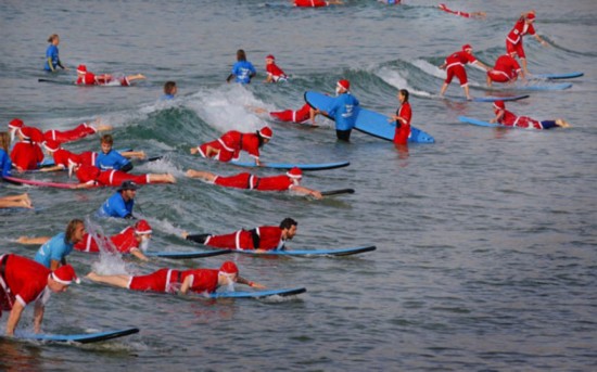 据英国《每日电讯报》12月16日报道,日前,数百名圣诞老人齐聚澳大利亚悉尼邦迪海滩集体学冲浪,以参与人数之多,规模之大打破吉尼斯世界纪录。