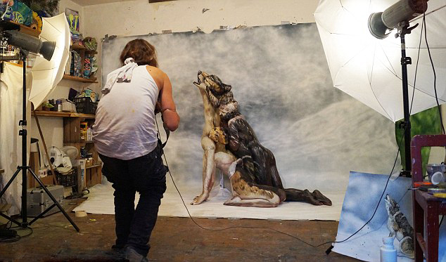 更为艰难的部分是野狼的毛发,可以看到,其毛发非常油亮丰满,想要让人看起来显得逼真非常不容易,因此对这对模特的要求也很高。约翰之前曾创作过“树蛙”、“变色龙”、“鹦鹉”等相关画作,经常给人一种“乱花渐欲迷人眼”的错觉。