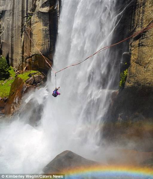 史上最危险的一字马!23岁女子瀑布前高空走钢索
