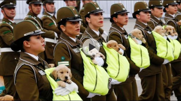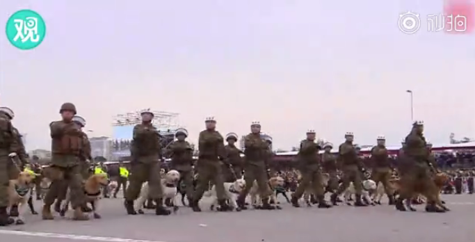 原标题:在智利的阅兵式上,因天气恶劣警犬被穿上了鞋子