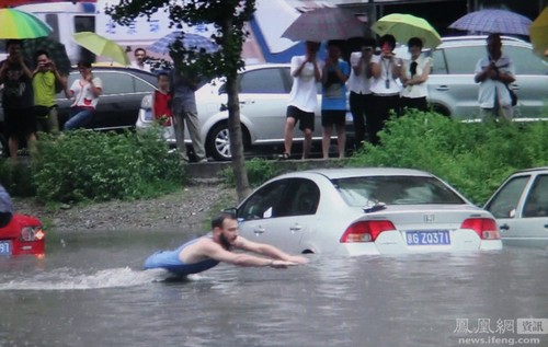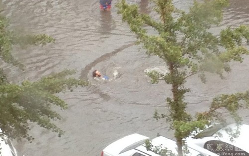 7月21日下午,北京遭遇今年以来最强暴雨袭击,城区多地积水严重。视频为一名老外在积水中游泳。