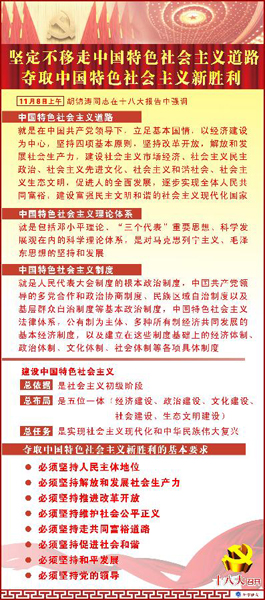 十八大报告对中国特色社会主义的新阐述还有很多,例如第一次提出收入倍增目标、海洋强国目标、美丽中国理念等,这就为我们进一步深入把握中国特色社会主义内涵,推动各条战线工作的科学发展指明了方向。详细>>