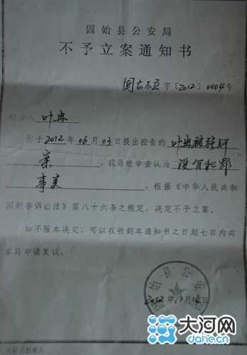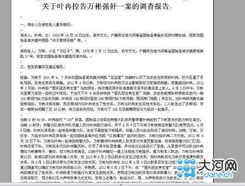 2月25日,固始县公安局发出了题为《关于叶冉控告万彬强奸一案的调查报告》的情况说明。该说明的结论为“办案人对案发时情况及案发前后双方当事人接触交往情况进行了全面的查证,均认为没有犯罪事实,故我局(固始县公安局)于2012年11月14日作出了不予立案决定。”