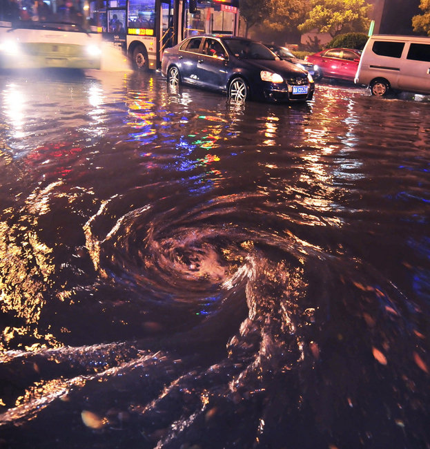 长沙遭暴雨袭击 21岁女孩掉入无盖下水道失踪