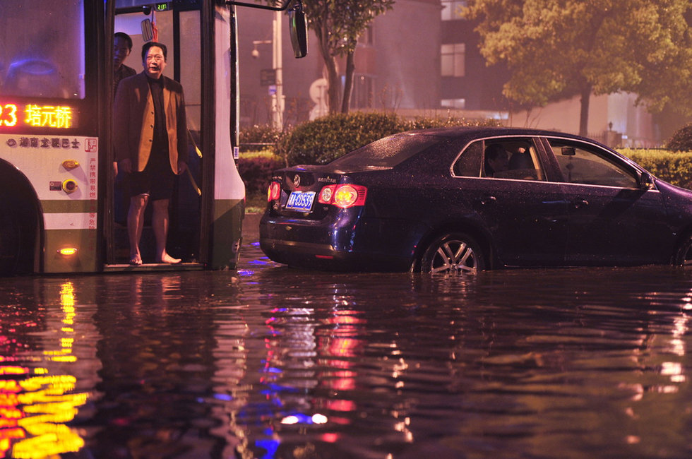长沙遭暴雨袭击 21岁女孩掉入无盖下水道失踪