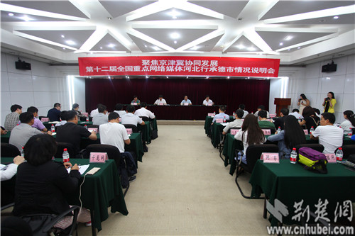 荆楚网消息(记者 鲁腾)8月14日上午,“聚焦京津冀协同发展——第十二届全国重点网络媒体河北行”承德市情况说明会在河北承德举行。承德市有关领导、全国各地40余家重点网络媒体参加了说明会。