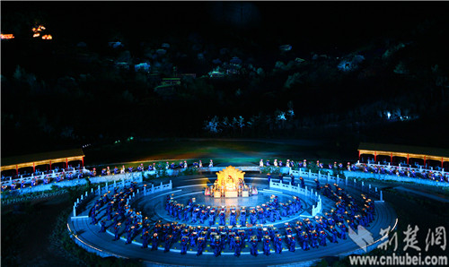 荆楚网消息(记者鲁腾)夜幕下,200匹骏马呼啸而来, 开启了“康熙大帝”传奇的一生。万马奔腾、气壮山河,这就是《鼎盛王朝-康熙大典》的开场。