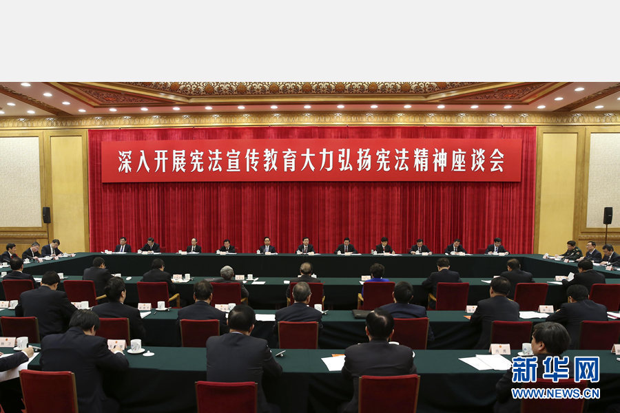 12月3日,“深入开展宪法宣传教育 大力弘扬宪法精神”座谈会在北京人民大会堂举行。中共中央政治局常委、全国人大常委会委员长张德江出席座谈会并讲话。 新华社记者 庞兴雷 摄