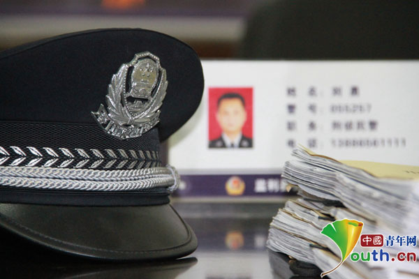 刘勇的警帽还静静地放在他的办公桌上。中国青年网记者 张世君 摄