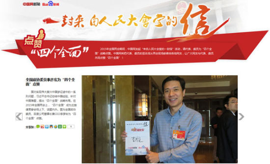 此外,“中国网两会新闻”手机APP、手机中国网两会专题同期上线,中国网官方微博也紧跟大会进程,通过图片、文字、音频等多种形式,在PC端与移动端滚动呈现上会记者即时见闻,带领读者直击两会现场。