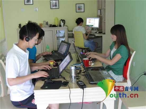 香哈早期的伙伴儿们在一间三室一厅的房间里,吃、住、办公一起,开始了苦逼的创业历程。田金涛供图
