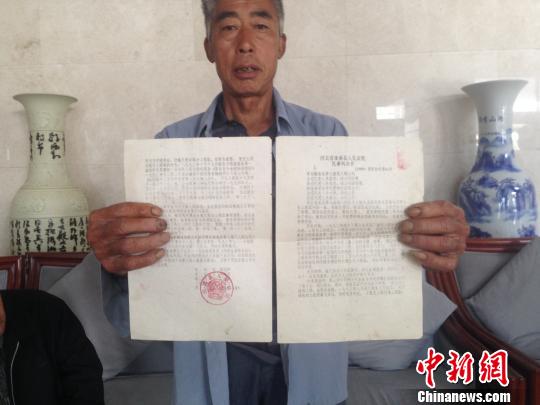 拿着泛黄的判决书,65岁的张起新欲哭无泪。 王天译 摄