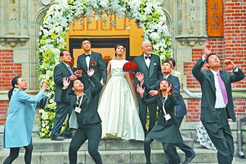 15日下午,新人在教会举行结婚仪式,李登辉提早现身会场。仪式结束后,亲友在教会外拍大合影,不想一中年男子突然向他们丢掷书面资料,大骂李登辉。