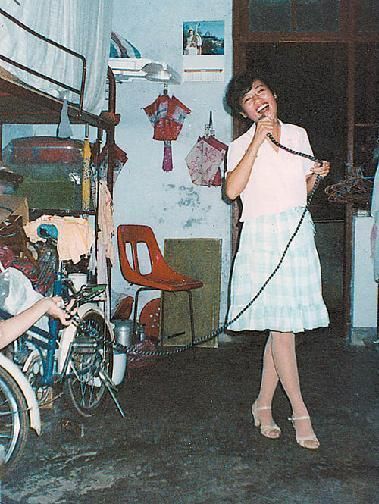 翁纯贤的脚印逐渐刻在了深圳这个大都市的大街小巷,也刻在了共和国改革开放的年轮上。她的生活从清贫到富裕,她的表情从青涩到从容。图为1982年在集体宿舍里手拿电饭煲的插头,模仿歌星高歌一曲。