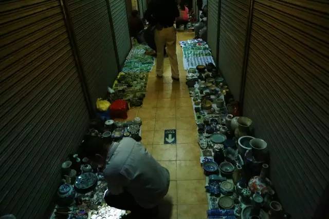 在网上查到,文昌北的天光墟只在周二开,因此3天之内再次造访了天光墟。但到了之后我发现,文昌北的天光墟已经被取缔了,周边有很多警察和城管在巡逻。和一位城管搭讪后得知,以往的天光墟是从三四点一直摆到八点,因为扰民,曾被周边居民多次举报疏于管理。“从今年才开始严厉打击,二楼有铺位他们不租,偏要在这里摆”,另一位城管说自己已经十几个小时没合眼了。这些摊贩进入市场内狭窄的过道继续经营,毕竟不属于公共地段,城管在市场内打趣说道,“大家慢慢摆啊,八点再赶你们”,“开张了没有啊,十块一个卖了啦”。从口音听出摊贩中河南人居多,而和另一名当地荔湾人口中得到,这里的古董百分之95都是假货。