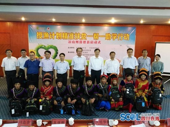 四川在线消息(李富民 四川日报记者 郝勇 文/图) 凉山州喜德县中学的阿育加加摸、马海阿甲等5名初中毕业生,作为“授渔计划精准扶贫一帮一助学行动”的受益者之一,他们将在四川省档案学校接受免费中等职业教育。6月19日,“授渔计划精准扶贫一帮一助学行动”在喜德县启动,该行动将帮助300名喜德县的贫困学生将到省档案学校就读,2年时间内,为每人每年提供3000元生活资助金,帮助其完成中等职业教育和后续的成人大专教育。国家档案局局长、中央档案馆馆长李明华出席启动并为受助学生代表赠送学习用品。