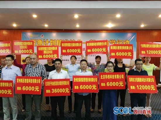 启动式现场,北京量子伟业信息技术股份有限公司等18家爱心家企业现场认捐了14余万元,资助24名喜德贫困学生到省档案校完成学业,并倡议、呼吁更多的爱心企业参与捐资助学、参与喜德县的职教精准扶贫行动中来。